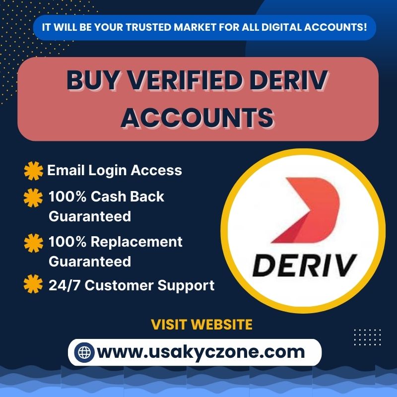 Looking to buy verified Deriv accounts quickly and securely? UsaKycZone offers fully verified Deriv accounts with completed KYC, clean history, and full trading access. These accounts are ideal for forex, synthetic indices, and CFD trading without restrictions. UsaKycZone ensures fast delivery, strong security, and reliable support, helping you avoid verification delays while enjoying smooth trades and long-term, stable Deriv account performance.